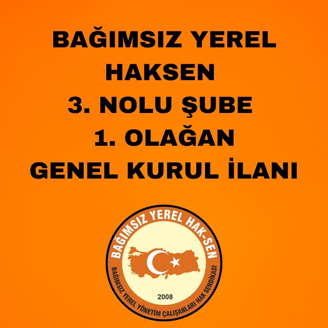 BAĞIMSIZ YEREL HAKSEN 3 NOLU ŞUBE 1. OLAĞAN GENEL KURUL İLANI
