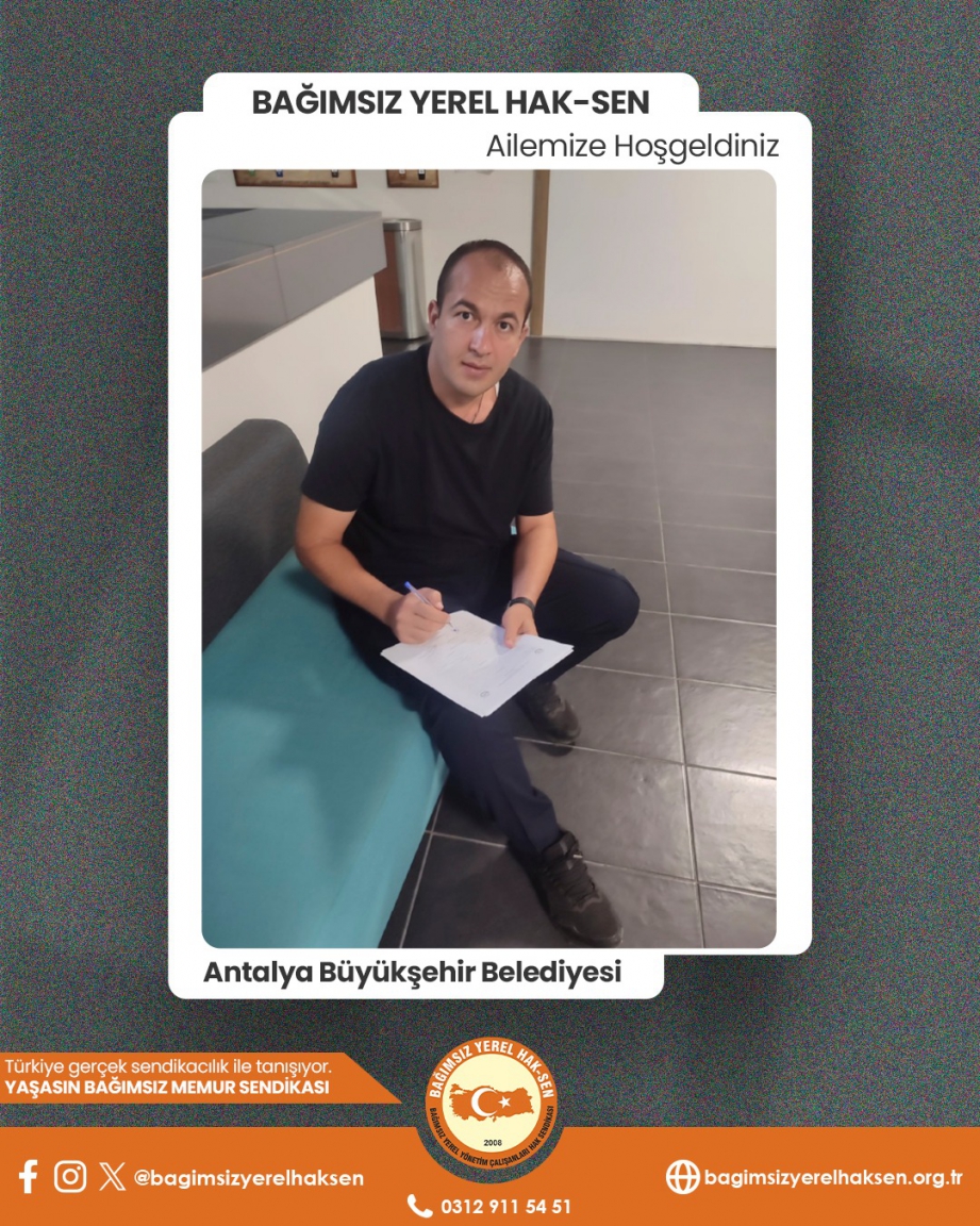 T.C. Antalya Büyükşehir Belediyesinden yeni bir üyemiz daha aramıza katıldı!
